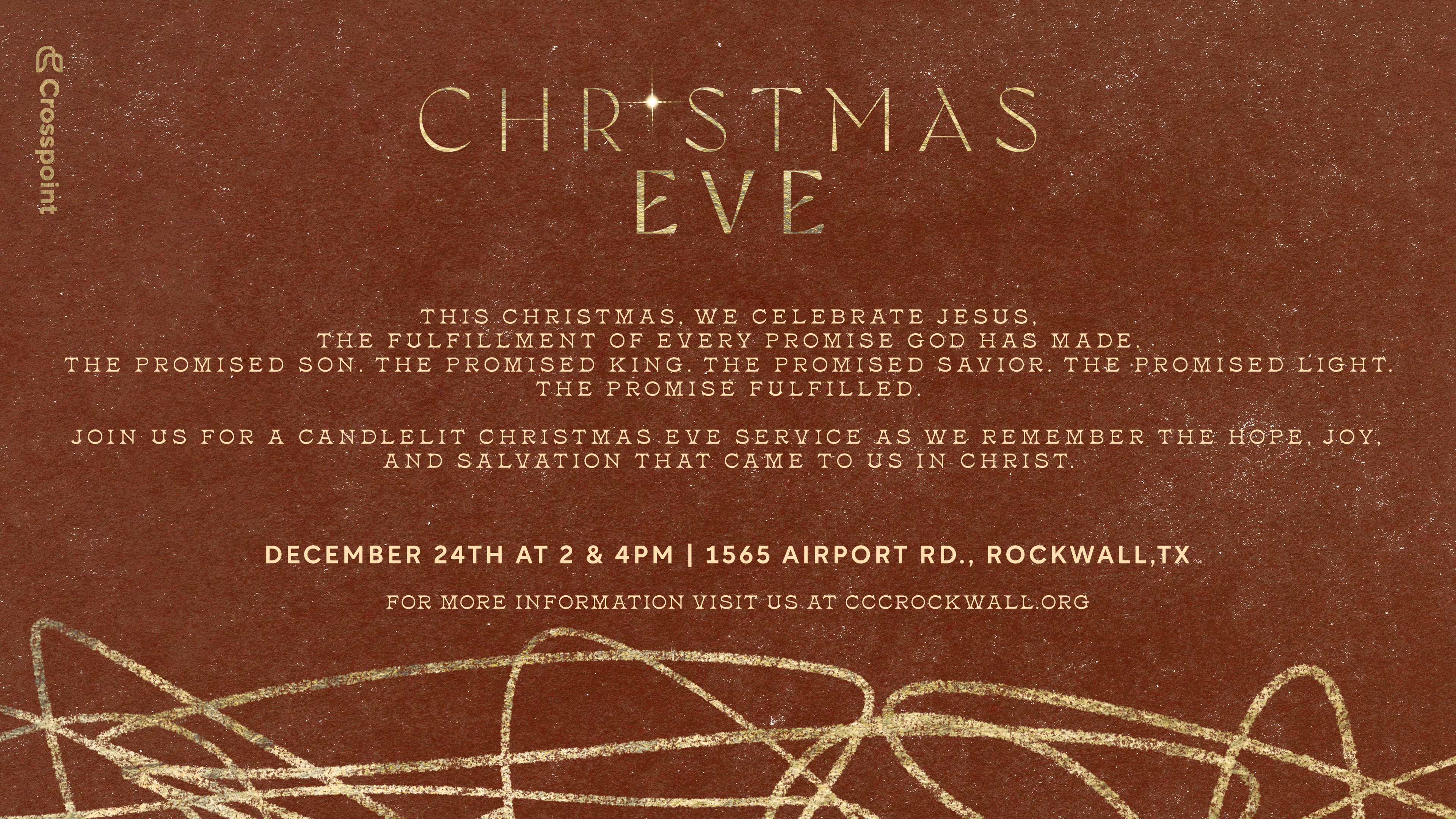 Christmas Eve services will be held on Wednesday, December 24th at 2 & 4pm at Cornerstone Church in Rockwall.